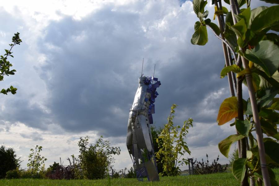 - Art: Skulptur aus geklopften und geschweißtem Edelstahl